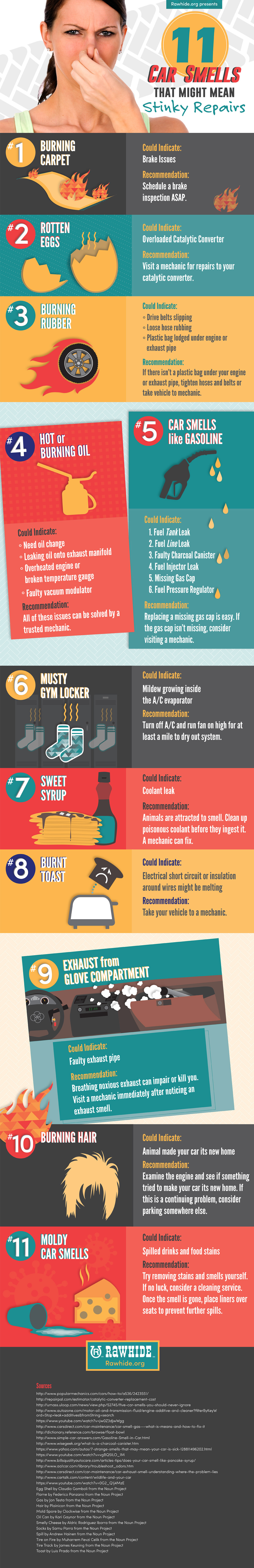 Wondering why your car smells? It could be the gym bag you forgot in your back seat or the partially eaten egg salad sandwich that fell under your seat. But it could also be a mechanical issue with your car. If your car is giving off one of the following odors, you might need more than a deodorizer… visit a mechanic.