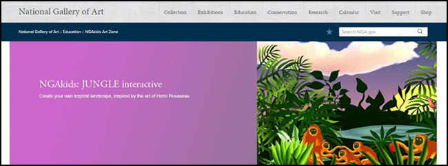 National Gallery of Art for Kids (NGAKids) offers entertaining and informative interactive art pieces that teach art history and encourage creativity. NGAkids gives kids the chance to create abstract paintings, animated portraits, collages, and other artwork they may share on their personal online gallery.
